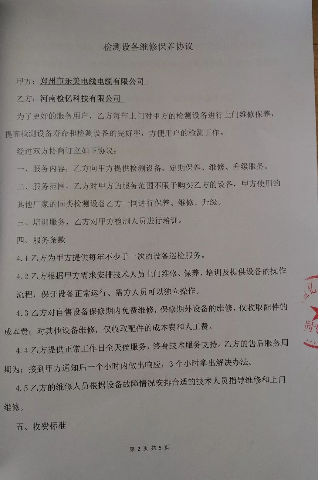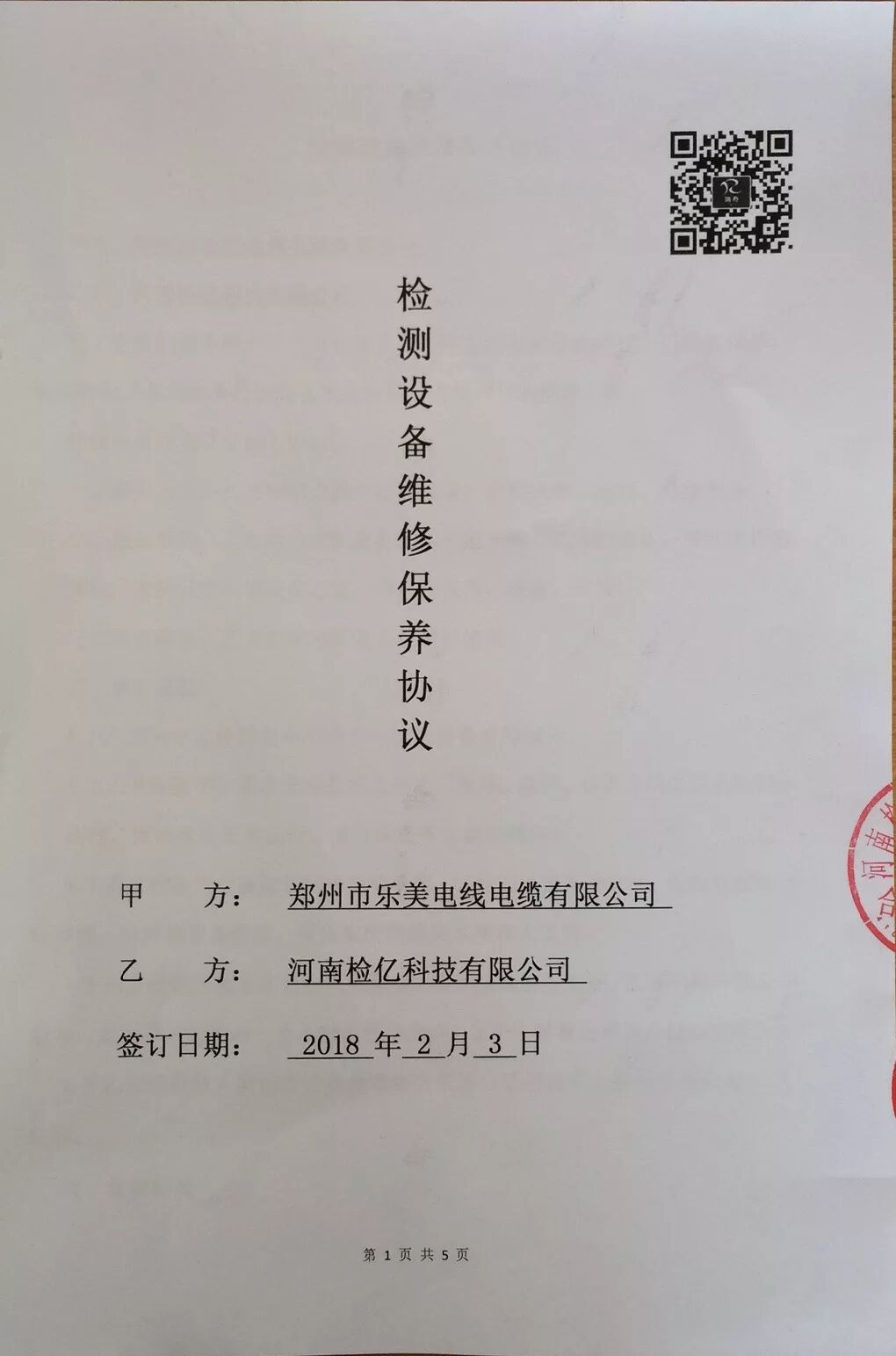 郑州乐美电线电缆有限公司与我司达成合作,签订4S维修保养协议:
